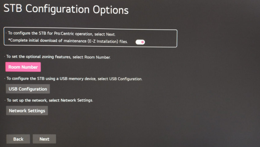 Ora che sono compilati sia il numero stanza che la connessione di rete, possiamo passare allo step successivo premendo "Next" in basso