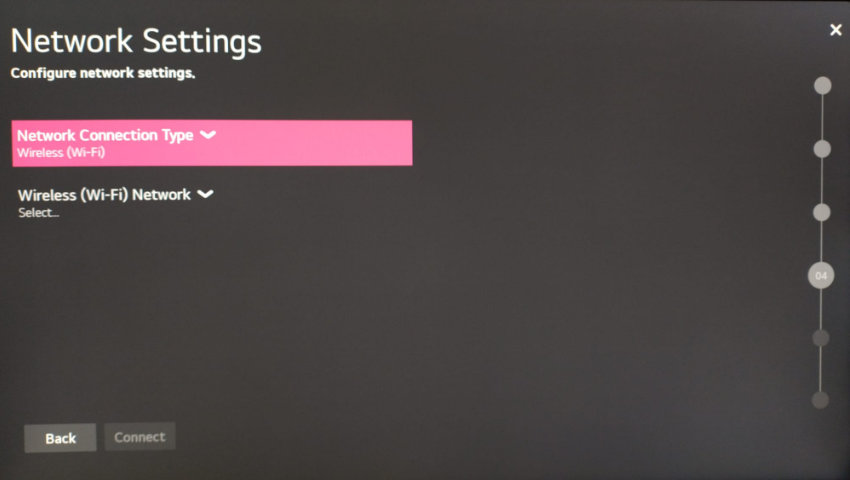 Se necessario configurare la connessione WiFi, selezionarla su Network "Connection Type"