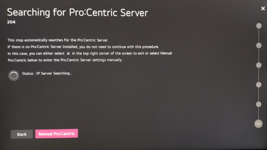 - Il ProCentric è un applicativo che lavora ad un livello superiore al televisore. Un'eventuale ricerca canali non avrà aclun effetto, la lista canali sarà sempre quella dell'applicativo. Esattamente come per le impostazioni hotel, il controllo resterà sempre in mano all'applicativo e non al dispositivo terminale